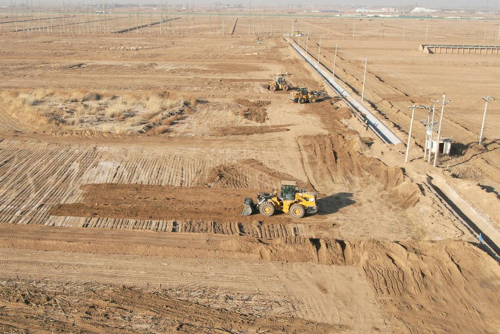 临河区白脑包镇永清村进行高标准农田建设。新华社记者李云平 摄