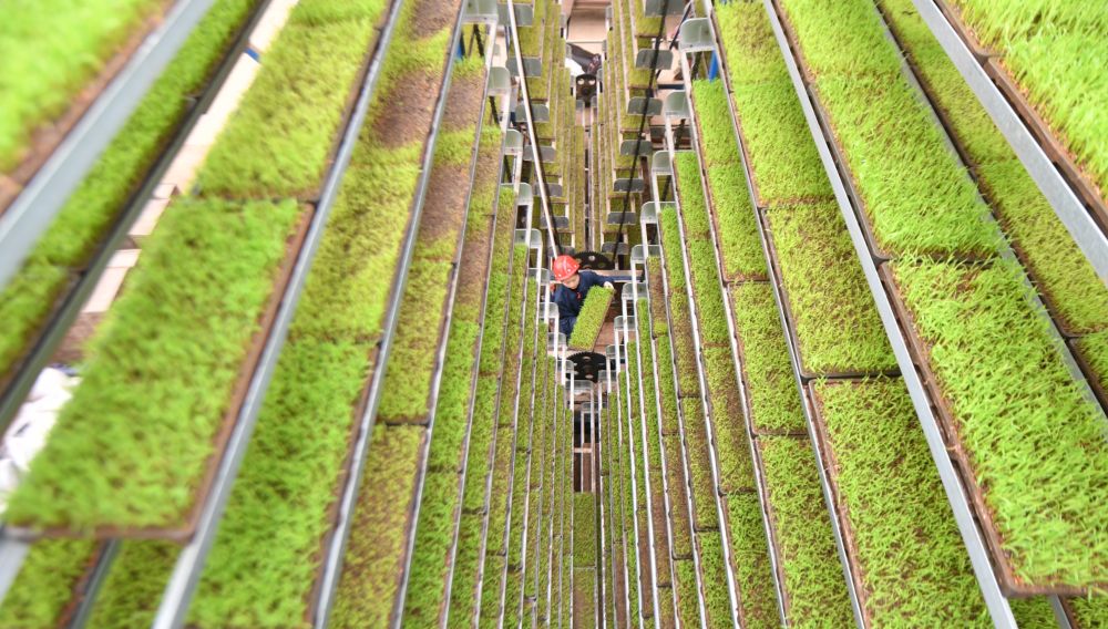 2024年3月21日,湖南省衡山县白果镇国丰农机服务专业合作社的农民在育秧。