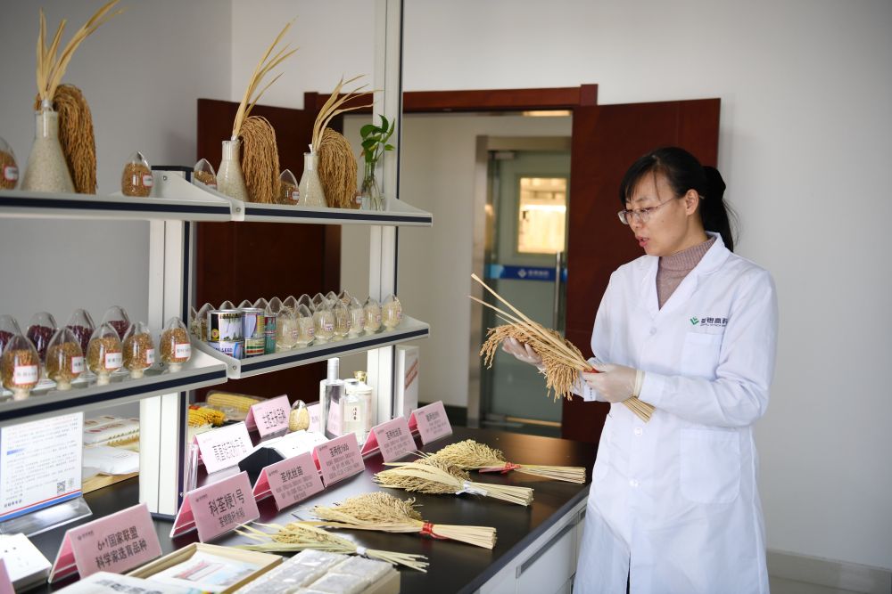 2024年3月12日,安徽一家种业公司的科研人员介绍该公司自主培育的高产优质广适品种水稻。近年来,合肥坚持保种、护种、育种、引种、用种“五种”并进,全力推动现代种业全产业链发展。