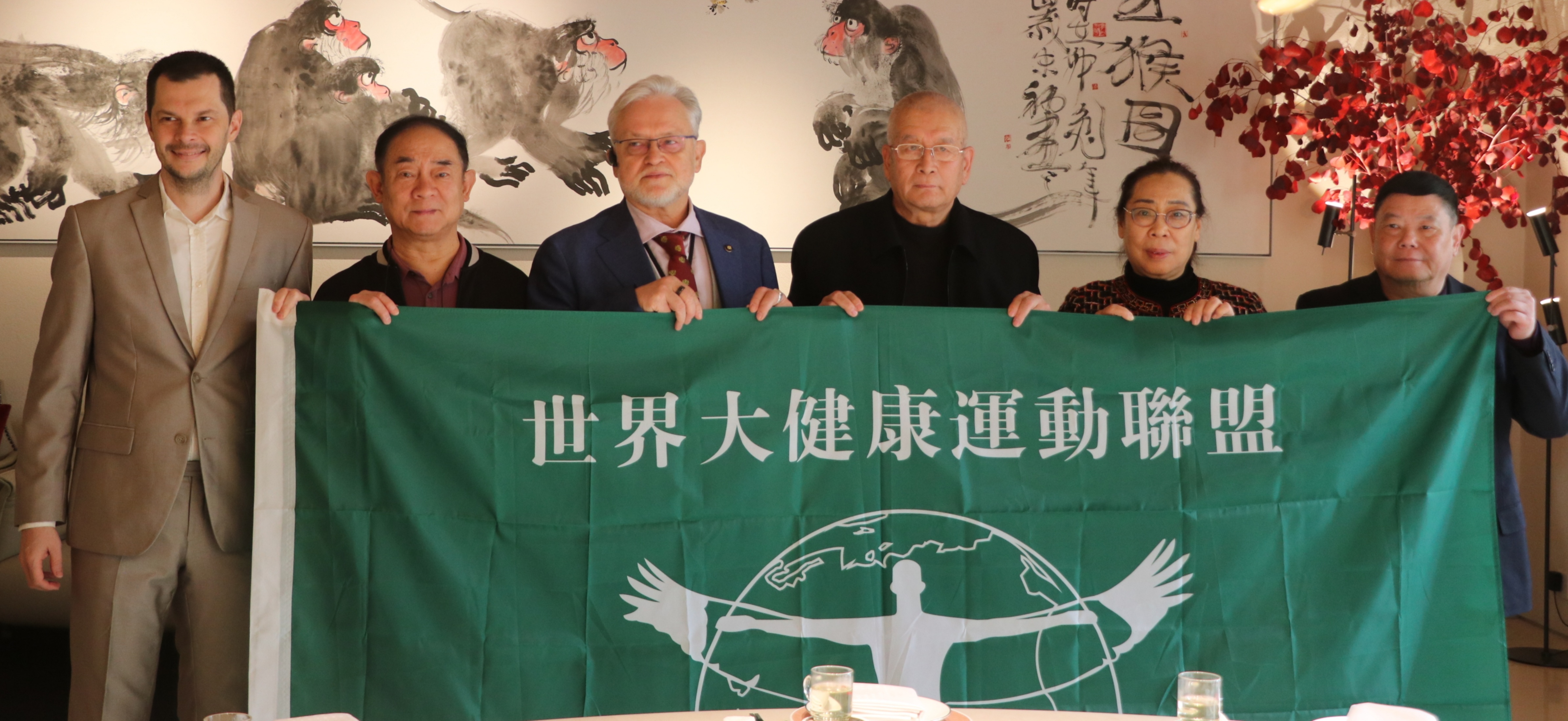 在中俄双方代表团成员和多家媒体的见证下,郭周礼主席将第十四届世界大健康论坛博览会暨第五届世界大健康运动会会旗,郑重授予伊格里先生。