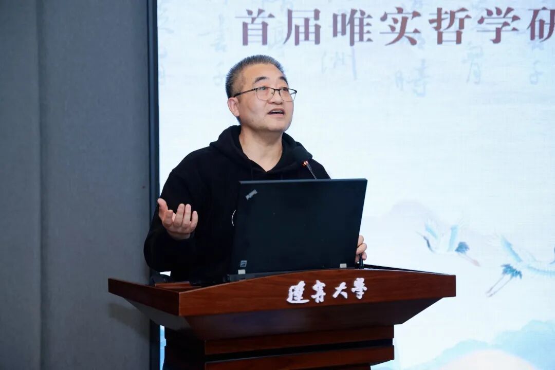 辽宁大学唯实哲学研究院首任院长兼首席专家张珂↑在演讲中指出,当前哲学界面临方法论创新的停滞困境,强调中国哲学亟需发展新的哲学方法论以突破传统研究范式。唯实主义是以“事实”和“事实性”为核心范畴的哲学方法论,提出了以真实性、整体性、主客观充分融合的三个方面的事实构建标准,并在去伪和事实构建过程中要遵循行为逻辑、非利益性、非当代性和非意识形态化等原则。在研究方法上,唯实主义提出了以归零重启法、唯实双构法、唯实史料、唯实比较等为主体的系列具体的研究方法以及唯实理性的立场和精神。