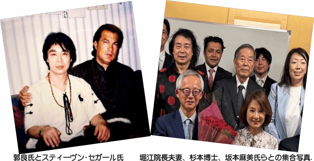 郭良氏は、華人として初めて「日本の国会」および「早稲田大学」で中華文化について講演した人物でもあります。来日40年余りで、数えきれないほどの中日英文の新聞や雑誌で報じられ、日本の「国会新聞」は17期にわたる大型連載で彼を「中国神秘文化の使者」と称し、近代において武術と医術を組み合わせた治療法を最も早く、そして最も優れた形で実践してきた人物であり、武術・映画・医学の「三星」とも称されています。