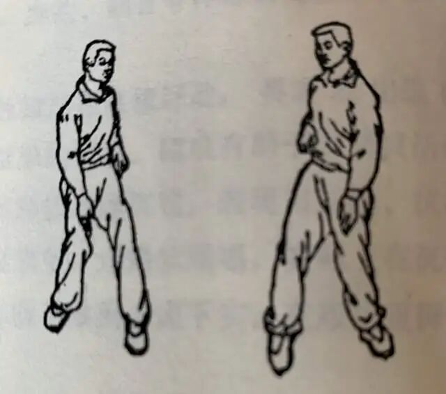 如熊戏,只有一个肩宽站立转胯运肩动作,或者可称之为简化熊运;