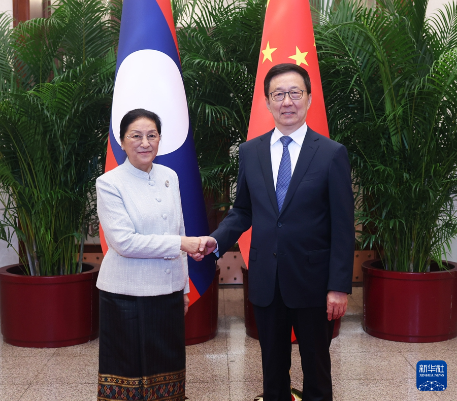 新华社北京10月14日电10月14日,国家副主席韩正在北京会见来华出席全球妇女峰会的老挝国家副主席巴妮。
